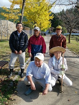 周辺の銀杏や紅葉が色づき、秋が近づいている快晴の空の下で、筑後川水の友会員6名の参加により、下草刈りと12月2日の桜とアジサイの植樹の準備を行いました。水平部分は機構で除草済みなので、葦が繁っている貯水池のり面部分を除草しましたが、草が硬く、なかなか捗らないため、次回刈り歯を取替行うこととしました。また、アジサイは水路沿いに約20本程度を植樹予定、桜は一本枯れていましたので植え替え、新規に1本植樹することにしました。今回初めて、倉庫の鍵が紛失し、持参していた合鍵で作業は支障なく行えました。