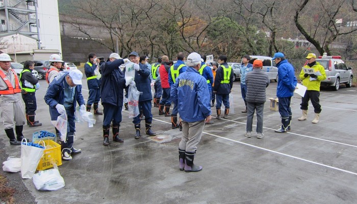 11月19日(月)、9時から、江川・寺内ダム周辺の小石原川・佐田川沿いの「ノ−ポイ」運動に筑後川水の友会員3名が参加して、水資源機構の職員外、その他団体の皆様合計129名でゴミ拾い、530kg(佐田川410kg、小石原川120kg)回収しました。