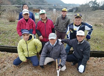 昨年と同じあじさいの肥料4袋を会員で散布し、また、長老の佐古さんが寺内ダム湖面近くに残っていた斜面を除草し、あじさい園全体が完全に除草されました。肥料散布と除草完了により、平成31年(2019年)も綺麗なあじさいが咲いてくれるものと思います。この日の参加人員9名でした。