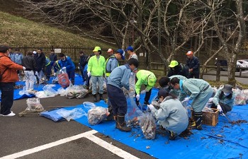 11月19日(月)、9時から、江川・寺内ダム周辺の小石原川・佐田川沿いの「ノ−ポイ」運動に筑後川水の友会員5名が参加して、 水資源機構の職員外、その他団体の皆様合計108名でゴミ拾い、350kg(佐田川240kg、小石原川110kg)回収しました。