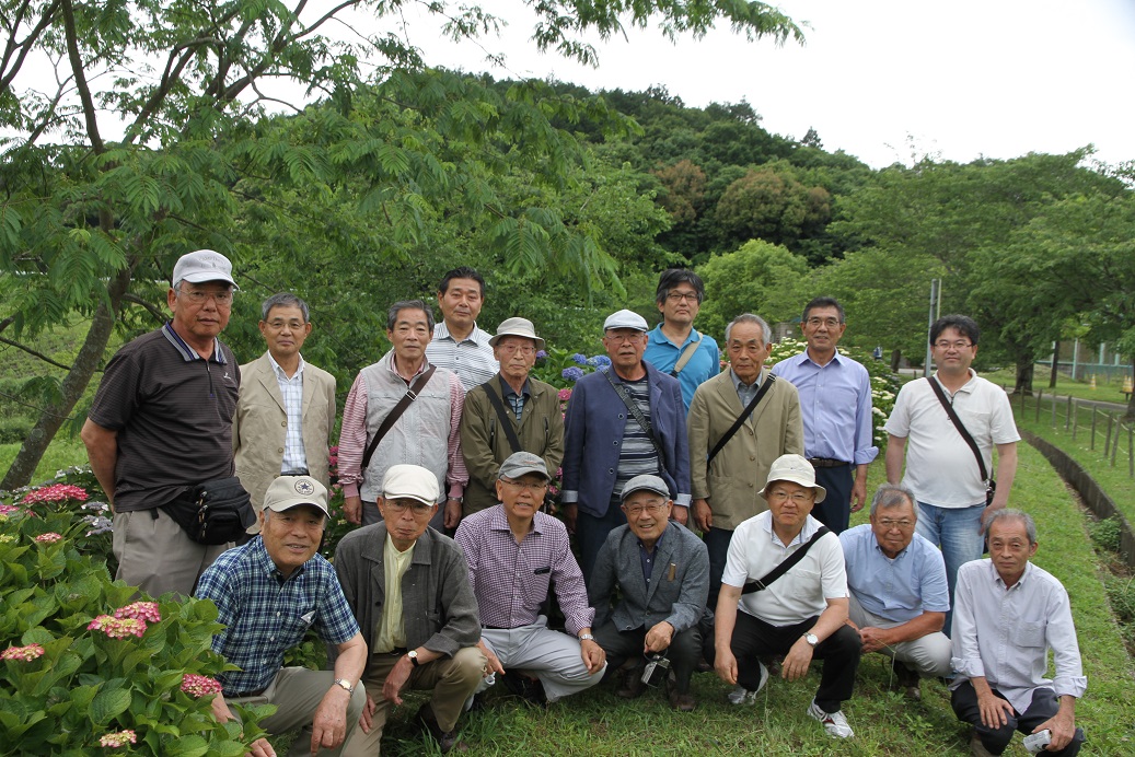 第9回目を迎えた鑑賞会は、6月8日(土)に会員16名と機構職員1名の参加で、「美奈宜湖あじさい園」において開催しました。アジサイの花は雨が少なかった影響か、満開の状況にはほど遠い開花状況でした。