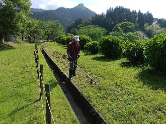 アジサイ開花前の曇り空の下で、下草刈りを5月20日(日)9時から、筑後川水の友会員14名の参加を頂き実施し、約1時間半で終了しました。参加者の皆様、ご苦労様でした。