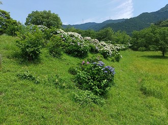梅雨の晴れ間の6月17日(土)に会員16名と機構職員1名の参加で、「美奈宜湖あじさい園」において開催しました。アジサイの花は雨が少なかった影響なのか、花柄摘みの時期が悪かったのか、一部のみ満開の状況でした。また、あじさいの花の色が、変化しているように感じられました。
