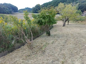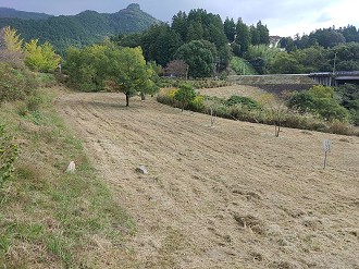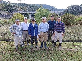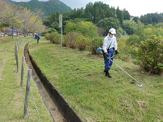 涼しい中でしたが休憩を取りながら、約2時間の作業で、すべての草刈りが終了しました。寺内ダム管理所で平場の草刈りをして頂いていました。