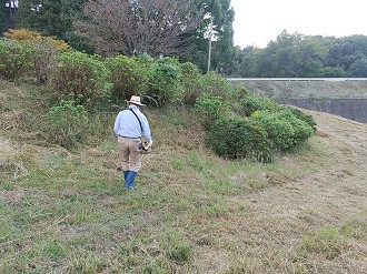 秋晴れの中、あまぎ水の文化村スポーツ広場でソフトボール大会が開催されている。10月15日(日)9時からあじさい園の草刈りを、筑後川水の友会員7名で実施しました。