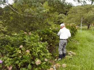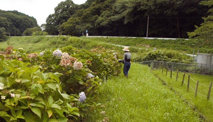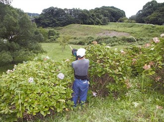 アジサイ下草刈りと花柄切り