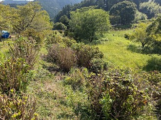 アジサイ下草刈りと花柄切り