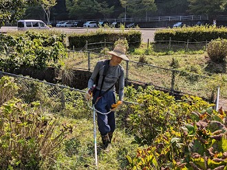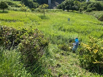 9時から下草刈りを予定していましたが、猛暑日が連続しているので早めに出来てきたと8時30分前には、すでに草刈りを開始している会員がおられました。