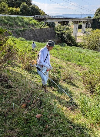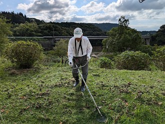 そんな中、筑後川水の友会員9名の御参加により、熱中症にならないように下草刈り作業を完了させ、当日の作業は完了しました。御参加頂いた皆様ご苦労様でした。