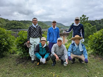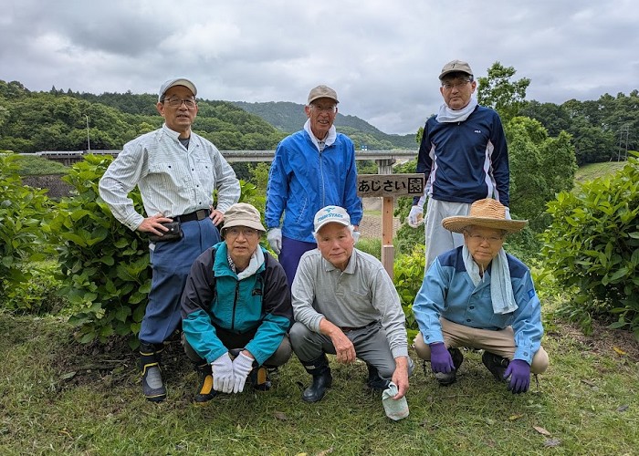 あじさい観賞会前の下草刈りを、5月25日(日)9時から、霧雨が降る中、筑後川水の友会員7名の参加を頂き実施し、約1時間半で終了しました。あじさいの花は、まだ蕾の状態で、観賞会までには満開となることを期待したいと思います。